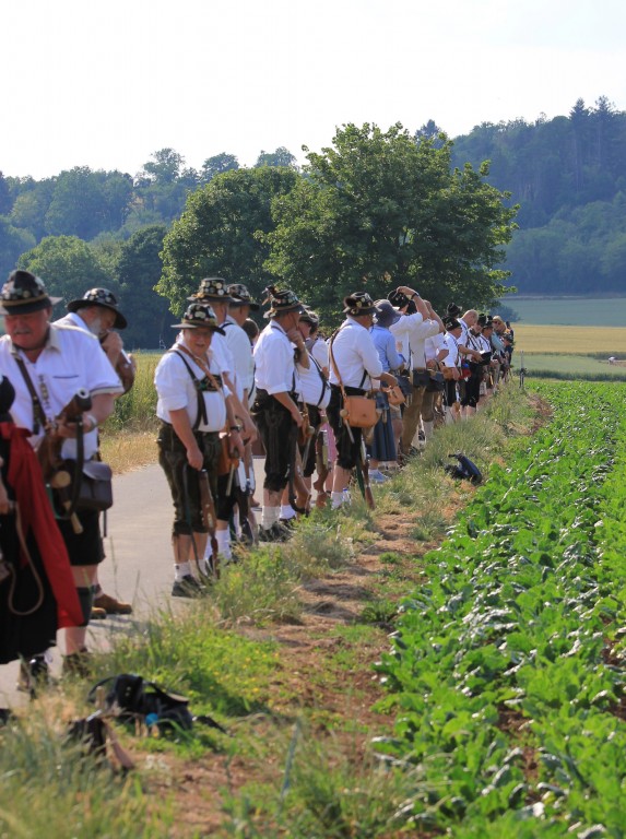 Der Sonntag begann mit einer sehr gut besuchten Hubertusmesse, die Pfarrer Krämer und die Karlstädter Jagdhornbläser zu einem Ereignis machten. Begleitet von der Zellinger Blaskapelle ging es dann direkt zum Frühschoppen über bevor jeder die Qual der Wahl beim reichhaltigen Speisenangebot hatte. Der Nachmittag wurde mit einem traditionellen Festumzug vom Spätzplatz bis zum Schützenhaus begonnen. Dieser bestand aus rund 500 Teilnehmern von Ortsvereinen aber vor allem aus Schützenvereinen der Umgebung. Nach dem Festumzug ging es mit Grußworten unseres Schützenmeisters Michael Koblinger, des Gau Schützenmeisters Axel Höfler, dem Bezirksschützenmeisters Mathias Dörrie, unserem Bürgermeister Stefan Wohlfahrt sowie dem MdL Thorsten Schwab weiter. Als Nächstes folgte die Ehrung von Horst Reuchlein und Bernd Volkenstein für 50 Jahre Mitgliedschaft im DSB und BSSB. Zum Abschluss des offiziellen Teils fand die Preisverleihung des Gau-Schießens mit Proklamation der neuen Gau-Schützenkönige statt. Den restlichen Sonntag gestalteten die Binsfelder Musikanten bis weit in die Nacht hinein.