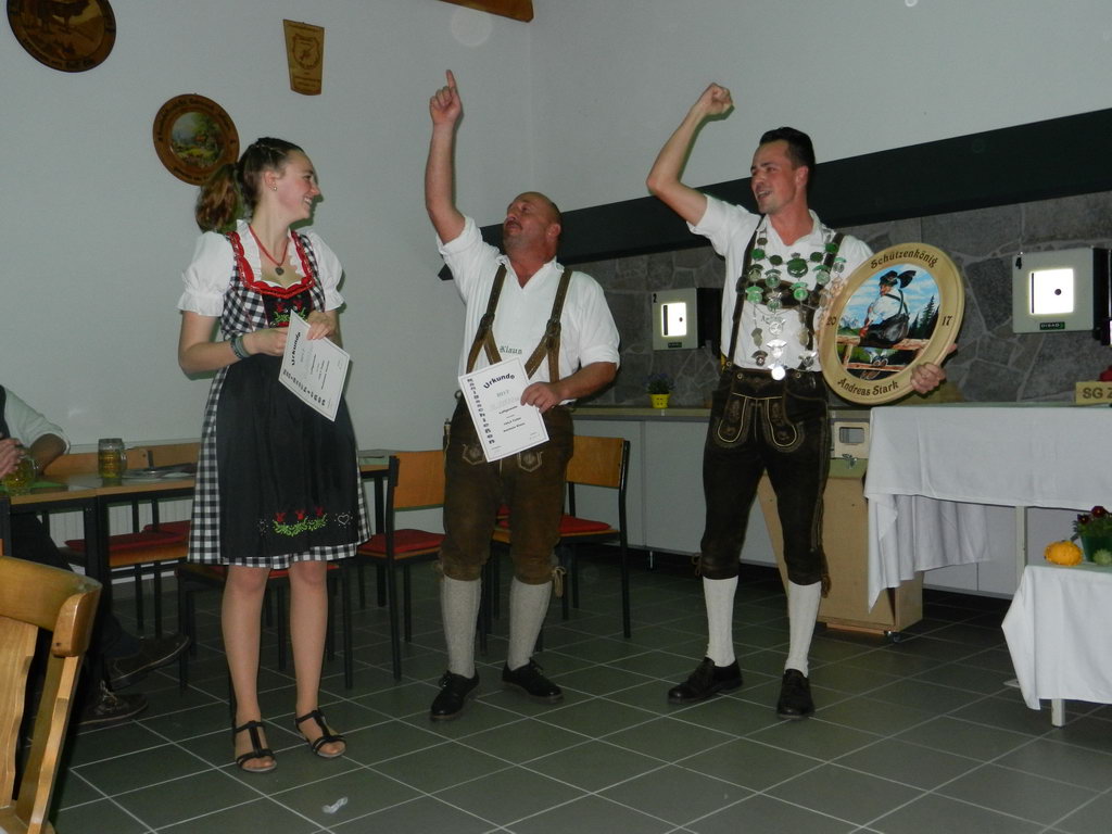 Den Höhepunkt des Abends brachte die Proklamation des neuen Schützenkönigs und Jugendschützen-königs mit ihren Rittern. Unser neuer Schützenkönig ist Andreas Stark mit einem 115,8 Teiler, welcher von seinem 1. und 2. Ritter Verena Hartmann 153,7 Teiler & Klaus Amrhein 194,0 Teiler flankiert wurde. Der neue Jugend Schützenkönig wurde Vanesssa Straub mit einem 155,2 Teiler, ihr standen ihre 1. und 2. Ritter Christoph Koblinger 273,5 Teiler & Leni Amrhein 382,5 Teiler zur Seite.