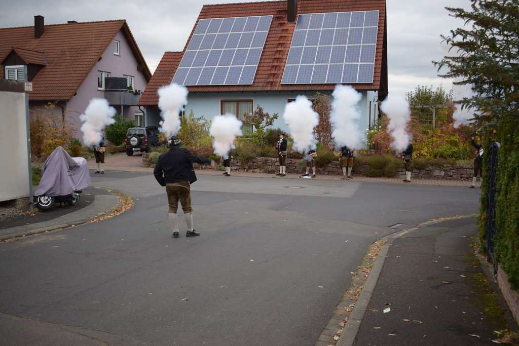Seinen Anfang nahm das Spektakel um 16:00 Uhr am Rathaus von wo aus wir mit einem kleinen Festzug, der durch die Binsfelder Musikanten begleitet wurde, loszogen um die amtierende Jugendkönigin Vanessa Straub abzuholen. Die Böllergruppe gab der Königin mit ein paar Böllerschüssen die Ehre. Zudem gab es zahlreiche Glückwünsche und musikalische Einlagen.