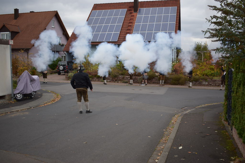 Seinen Anfang nahm das Spektakel um 16:00 Uhr am Rathaus von wo aus wir mit einem kleinen Festzug, der durch die Binsfelder Musikanten begleitet wurde, loszogen um die amtierende Jugendkönigin Vanessa Straub abzuholen. Die Böllergruppe gab der Königin mit ein paar Böllerschüssen die Ehre. Zudem gab es zahlreiche Glückwünsche und musikalische Einlagen.
